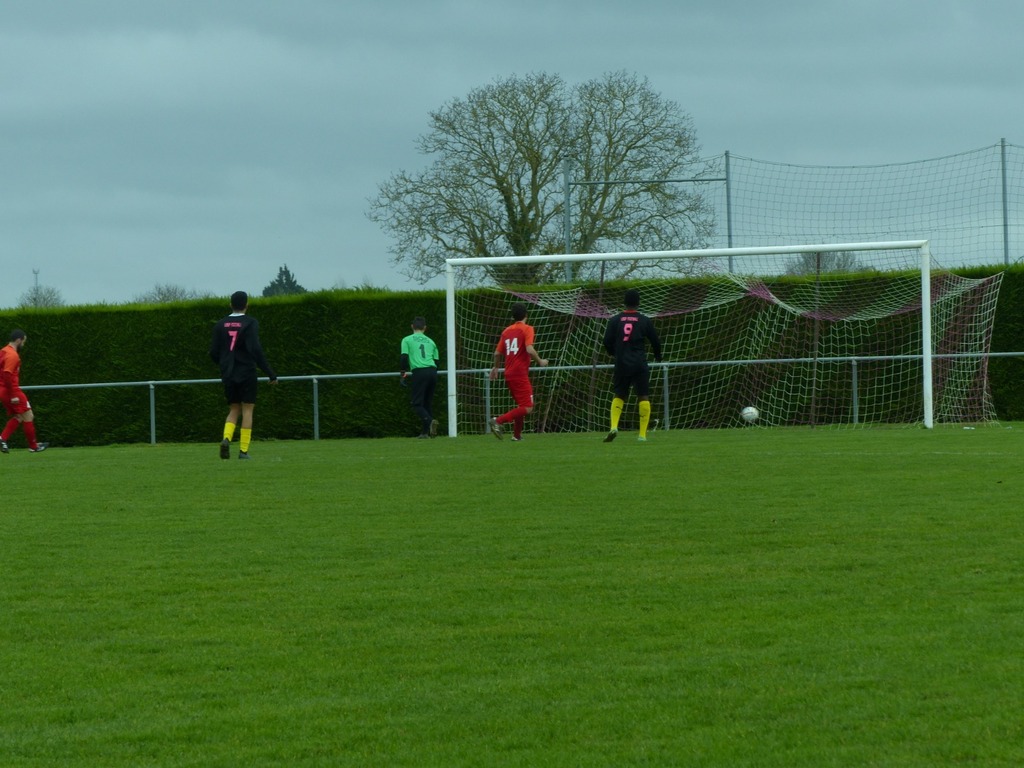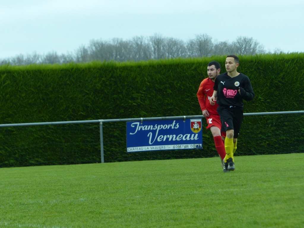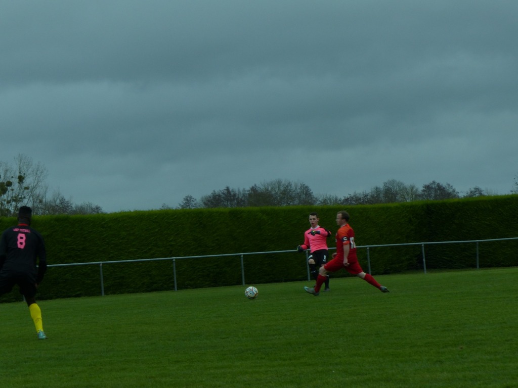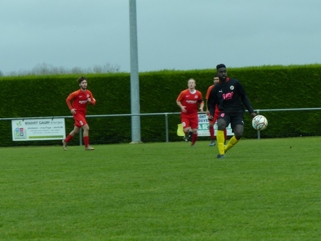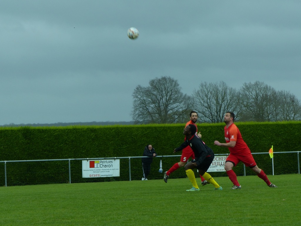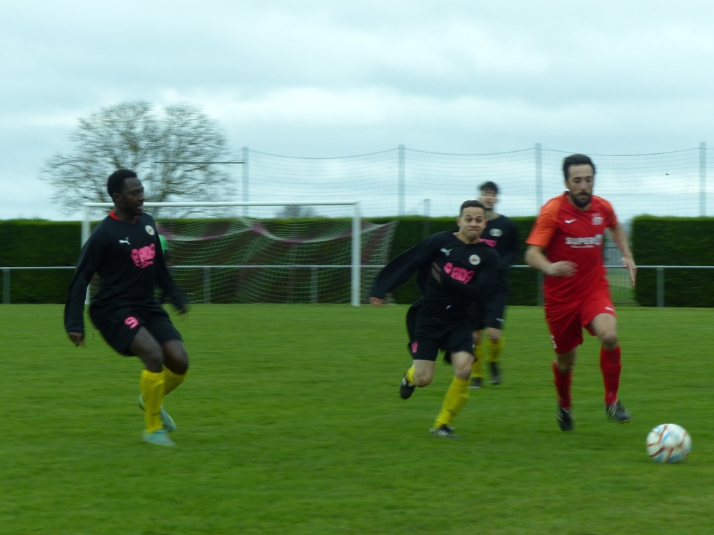 En ce dimanche maussade nous nous déplaçons à Villiers au bouin pour un match très important chez un mal classé. D'entrée de jeu sur un terrain très correct pour la saison l'enjeu l'emporte sur le jeu, nous dejouons, et alors que Zak se blesse sur une belle chevauchée côté droit, nous nous retrouvons à 10 et encaissons un but sur le contre . Heureusement Bruno rentre dans la surface et se fait bousculer : penalty transformé tranquillement par souleyman. Le jeu s'équilibre mais Villiers avec l'appui du vent obtient un autre penalty lui aussi bien exécuté. Mi temps 2/1 pour les locaux. La pause nous permet de bien récupérer et de repartir tambour battant, une balle en profondeur et une hésitation de la défense locale permettant à Souleyman de marquer dans le but vide 2/2 . La suite est assez équilibrée malgré de bonnes tentatives de nos attaquants Bruno, Owen ou encore Brahim. Finalement à la 90 ème minute Souleyman pour son anniversaire obtient un penalty qu'il transforme lui même s'offrant par ailleurs un beau hat trick ... Villiers pousse dans le temps additionnel mais le score ne bougera pas avec cette victoire obtenue aux forceps 3 buts à 2 . Bravo au groupe pour l'abnégation !